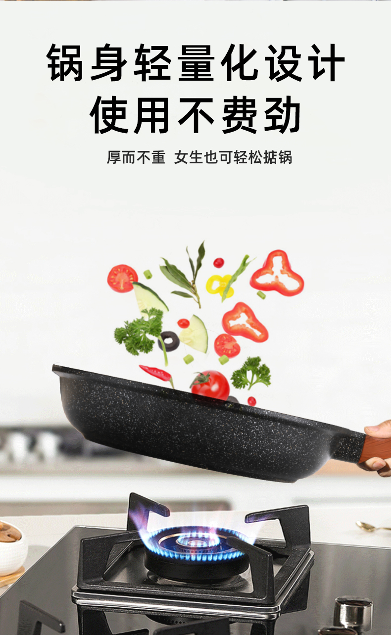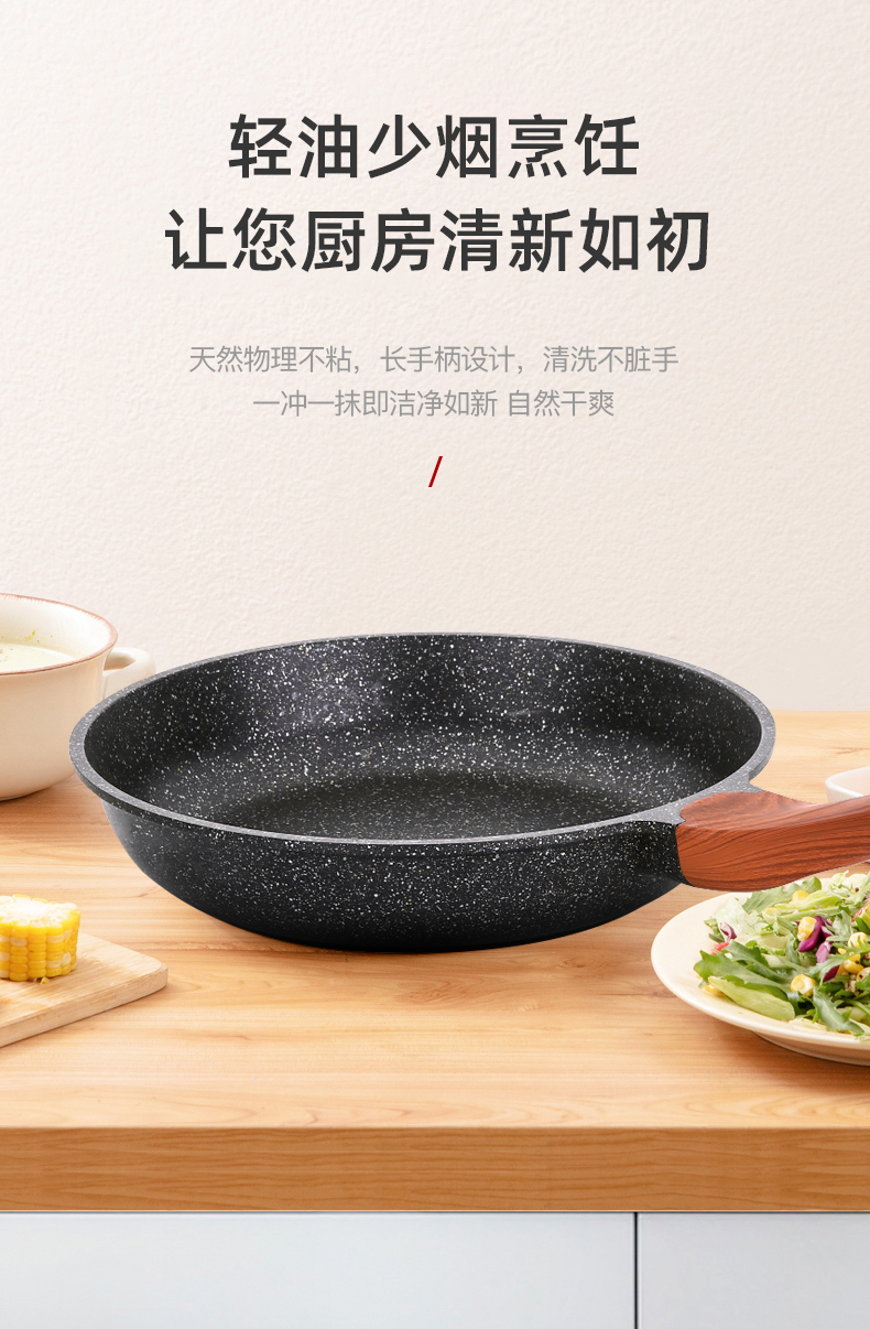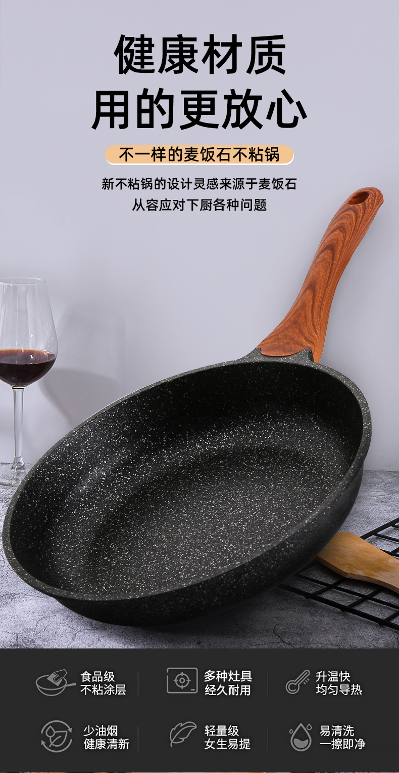 復(fù)合底快速導(dǎo)熱省氣省電,有質(zhì)感、健康材質(zhì),不粘煎鍋,好用易清洗